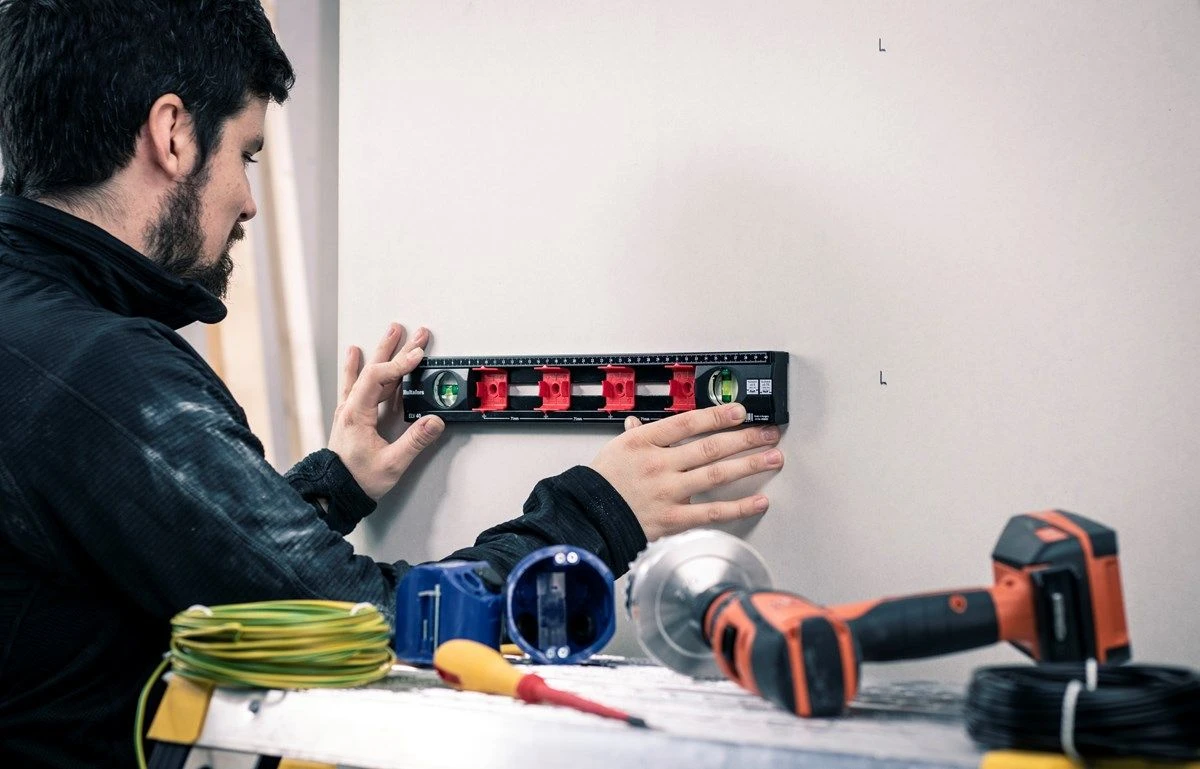 Hultafors waterpas voor snelle en nauwkeurige positionering bij installeren van schakel- of aansluitdozen.