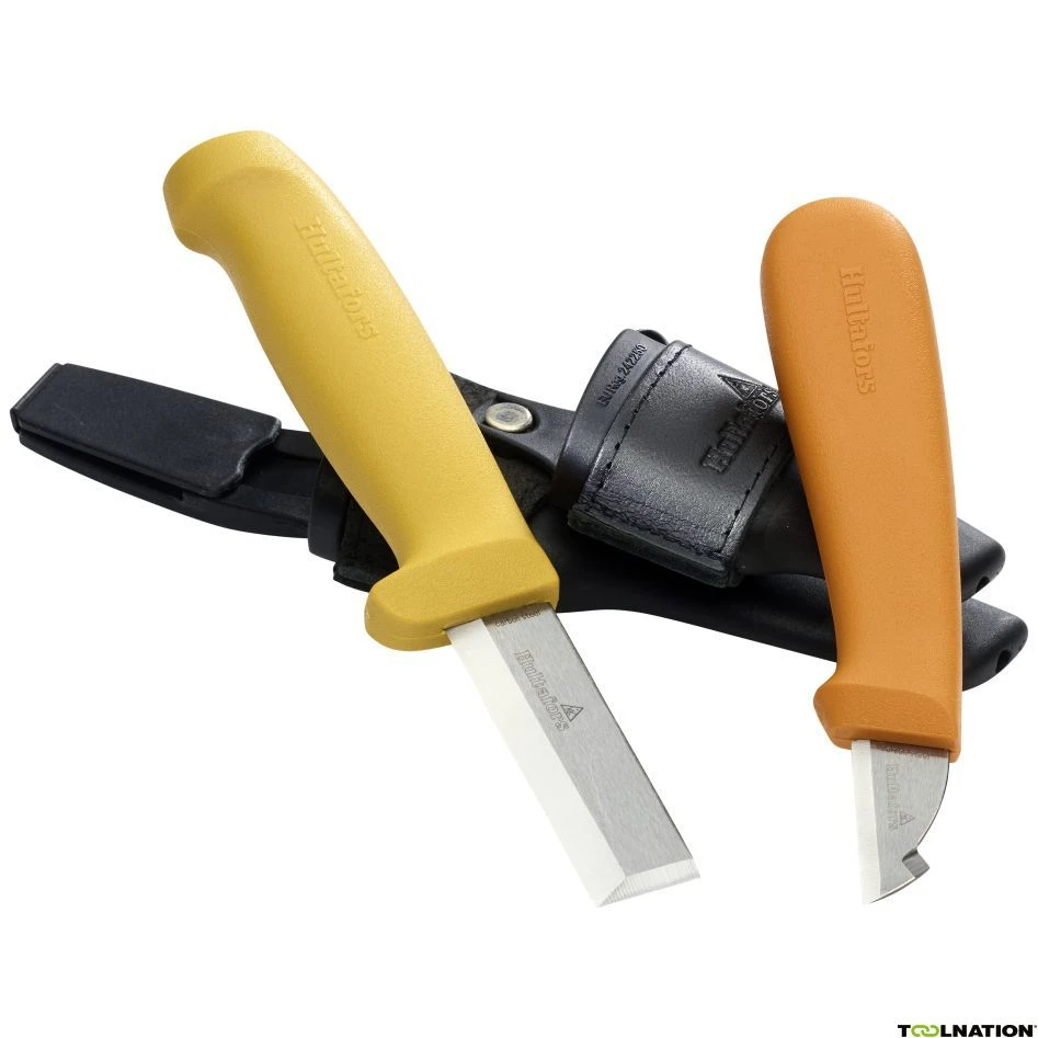 Dit dubbele holster van Hultafors bevat beitelmes STK en elektriciensmes ELK. Het beitelmes is robuust en heeft een unieke beitelfunctie. Het ELK elektriciensmes is geoptimaliseerd voor het strippen en snijden van kabels. Samen vormen ze een praktisch paar voor de elektricien. Dankzij het dubbele holster heb je altijd jouw twee meest gebruikte messen binnen handbereik. Zo kun je snel en efficiënt werken. Het dubbele holster is gemaakt van impactbestendig PP-plastic en voorzien van een elastische lus. Het dubbele holster is verkrijgbaar in verschillende combinaties. Wanneer de messen toe zijn aan vervanging vul je de holster eenvoudig met nieuwe exemplaren.