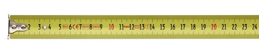 Stevige rolband met ergonomische greep, rubberen knop en rem. Voorzien van een een hoge impactbestendige behuizing van ABS-kunststof. Gele, slijtvaste band ingedeeld met zeer nauwkeurige inkjet print. Het meetlint beweegt soepel terug en heeft een speciale stootstop die beschermt tegen slijtage.