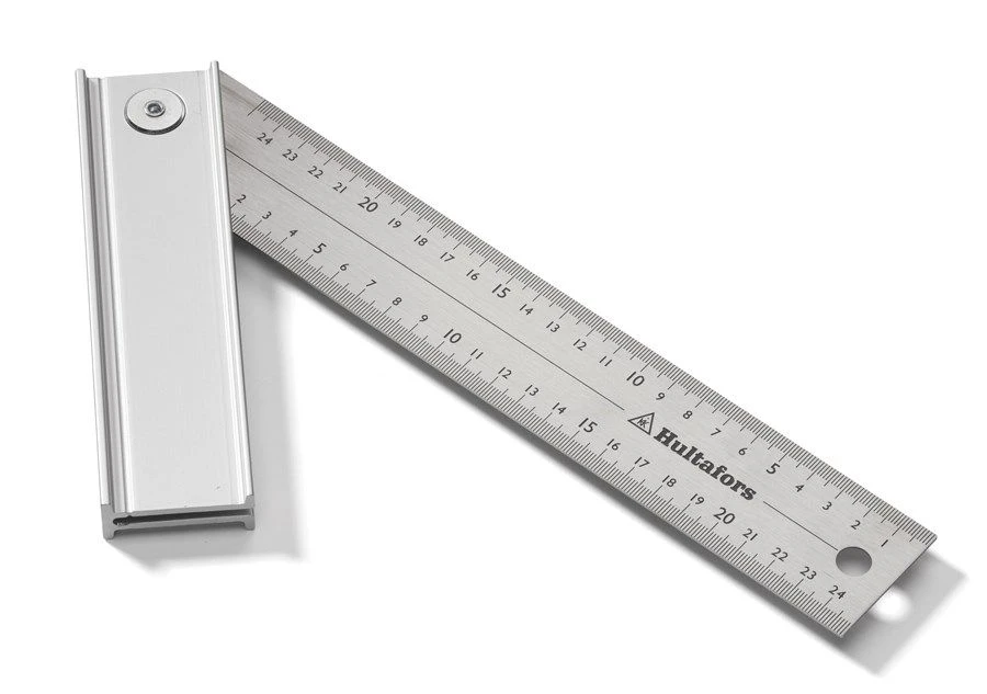Hultafors Quattro 25 winkelhaak met mm-schaalverdeling die kan worden ingesteld op 45°, 90° en 135°.