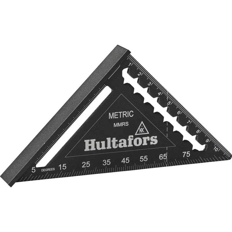 • De rafter square heeft ook inkepingen die kunnen worden gebruikt om lijnen langs een rand te trekken met een potlood of direct met een mes te snijden bij het werken met gipsplaten. • En natuurlijk heeft de middelgrote en grote versie de originele schaalverdeling voor het zagen van zadeldak en schilddak spanten en daktegels.