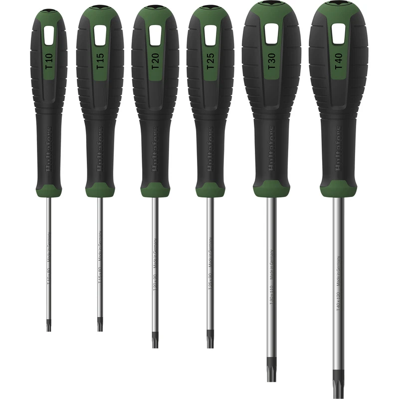 • Torx® schroevendraaier in 6 van de meest voorkomende maten, ontwikkeld voor professioneel gebruik samen met vakmensen